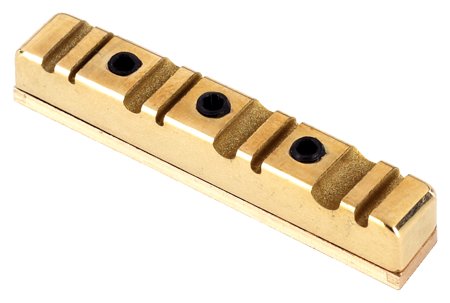 - sedlový pražec "Just a Nut" vyrobený z mosazi