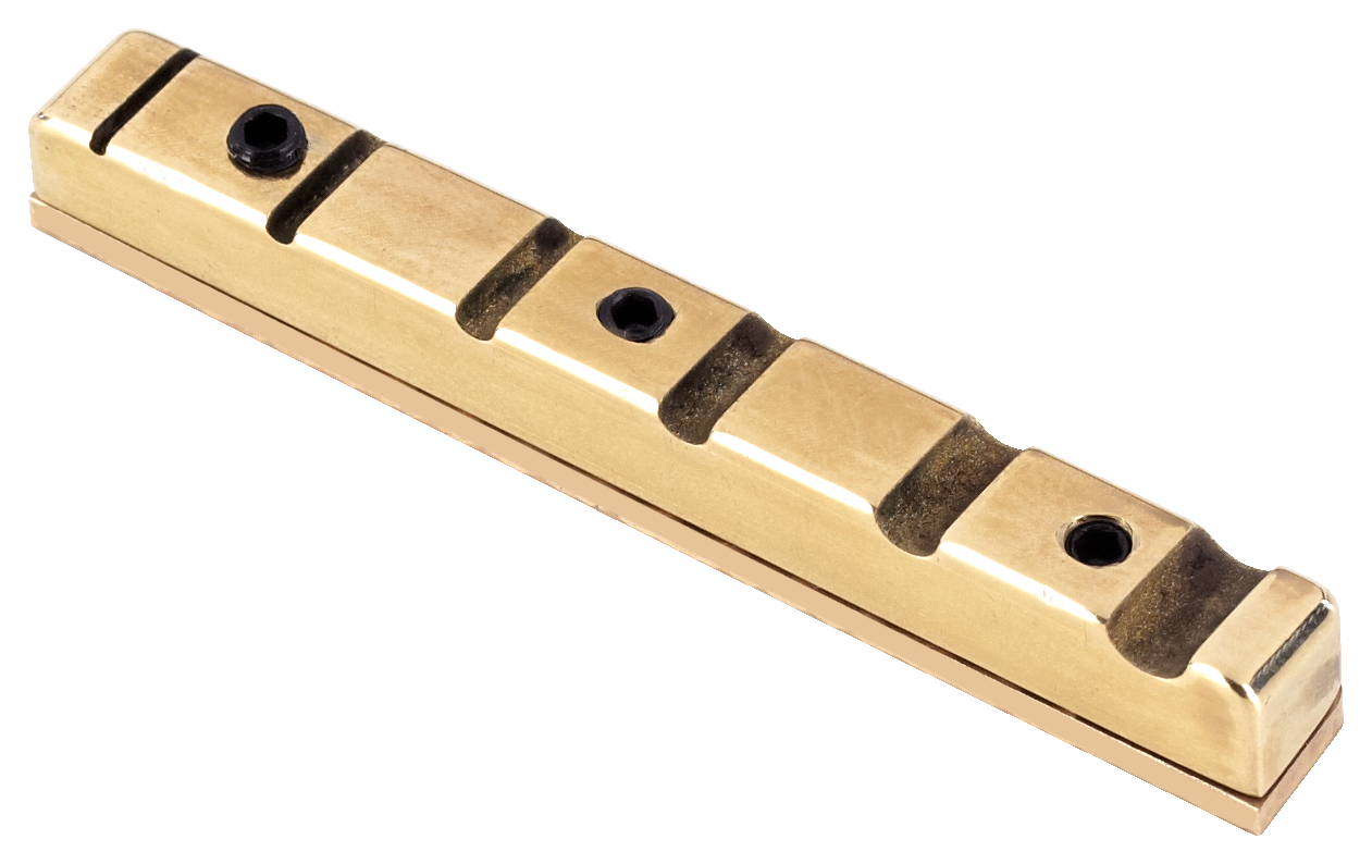 - sedlový pražec "Just a Nut" vyrobený z mosazi