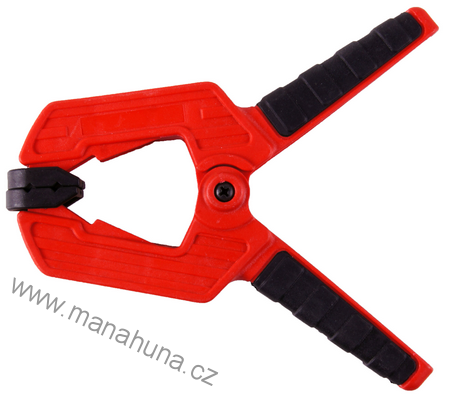 Pružinová svorka, maximální roztažení 100mm, kyvné čelisti, pogumovaná rukojeť.