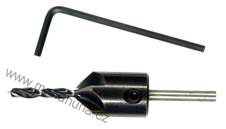 Záhlubník 16 x 4mm, s vrtákem, včetně inbus klíče. Zahlubuje v úhlu 90°, nastavitelná hloubka vrtání.